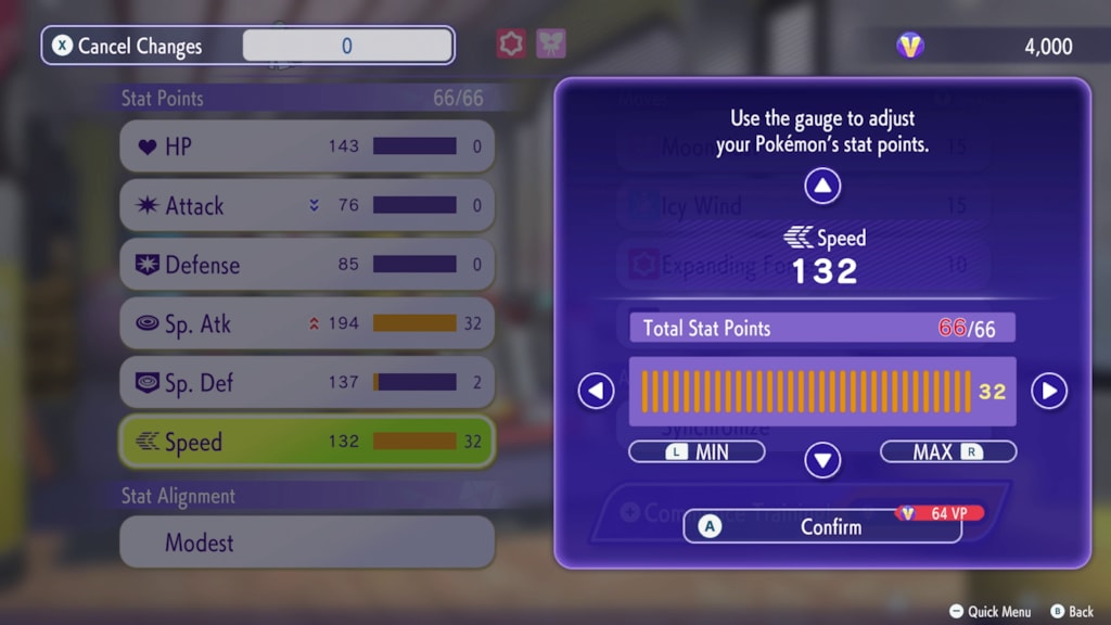 After obtaining a Pokémon either from Roster Ranch or by importing from Pokémon HOME, you can customize its stats directly from the Pokémon detail screen. The game even visualizes stat increases in real-time, so you can see exactly how your allocations affect performance.